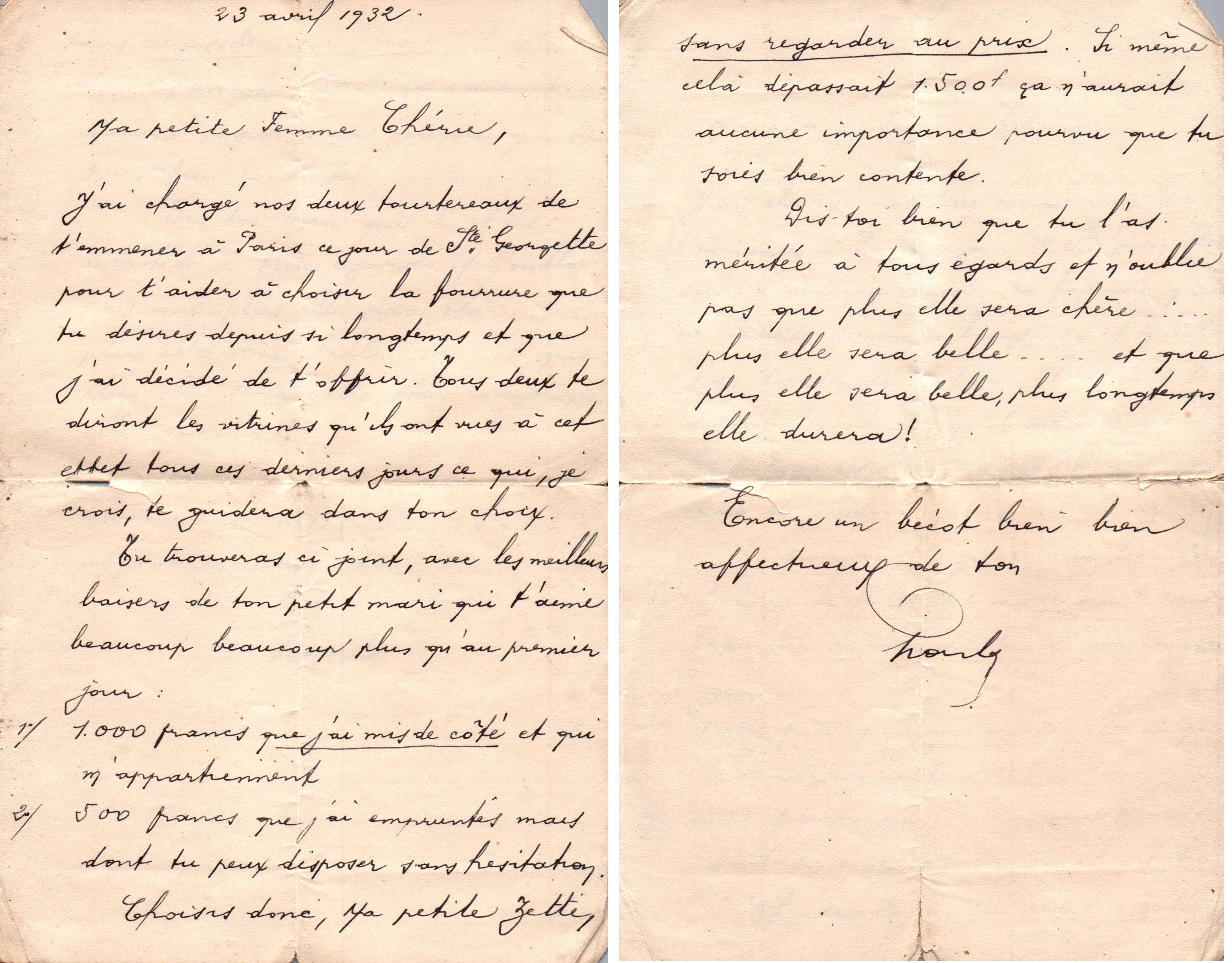 • 1932 : Murgeon Charles (1899-1976) : Lettre à sa femme et à sa fille