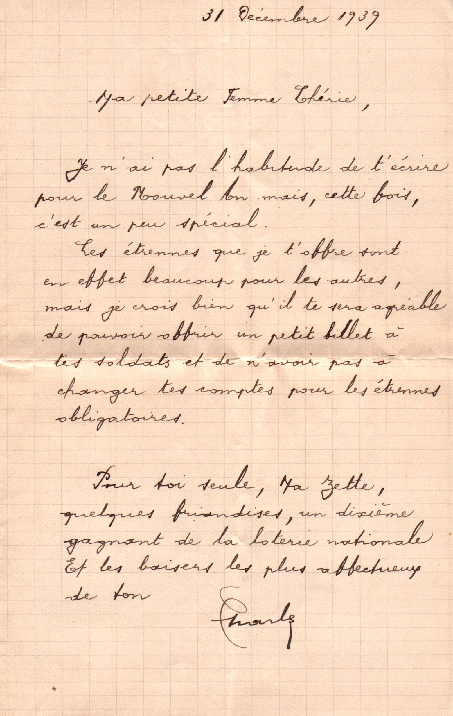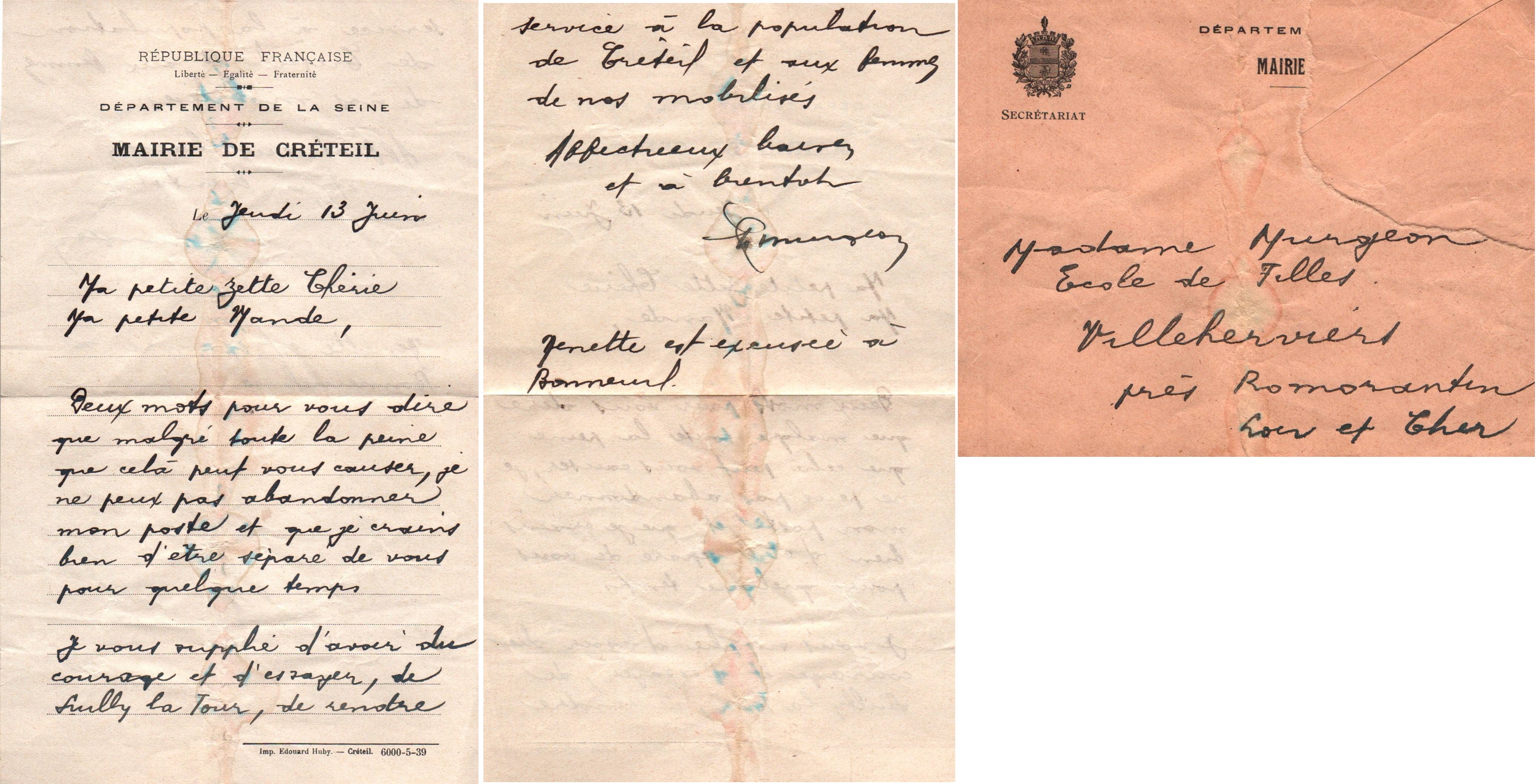• 1939 : Murgeon Charles (1899-1976) : Lettre à son épouse Georgette Murgeon
