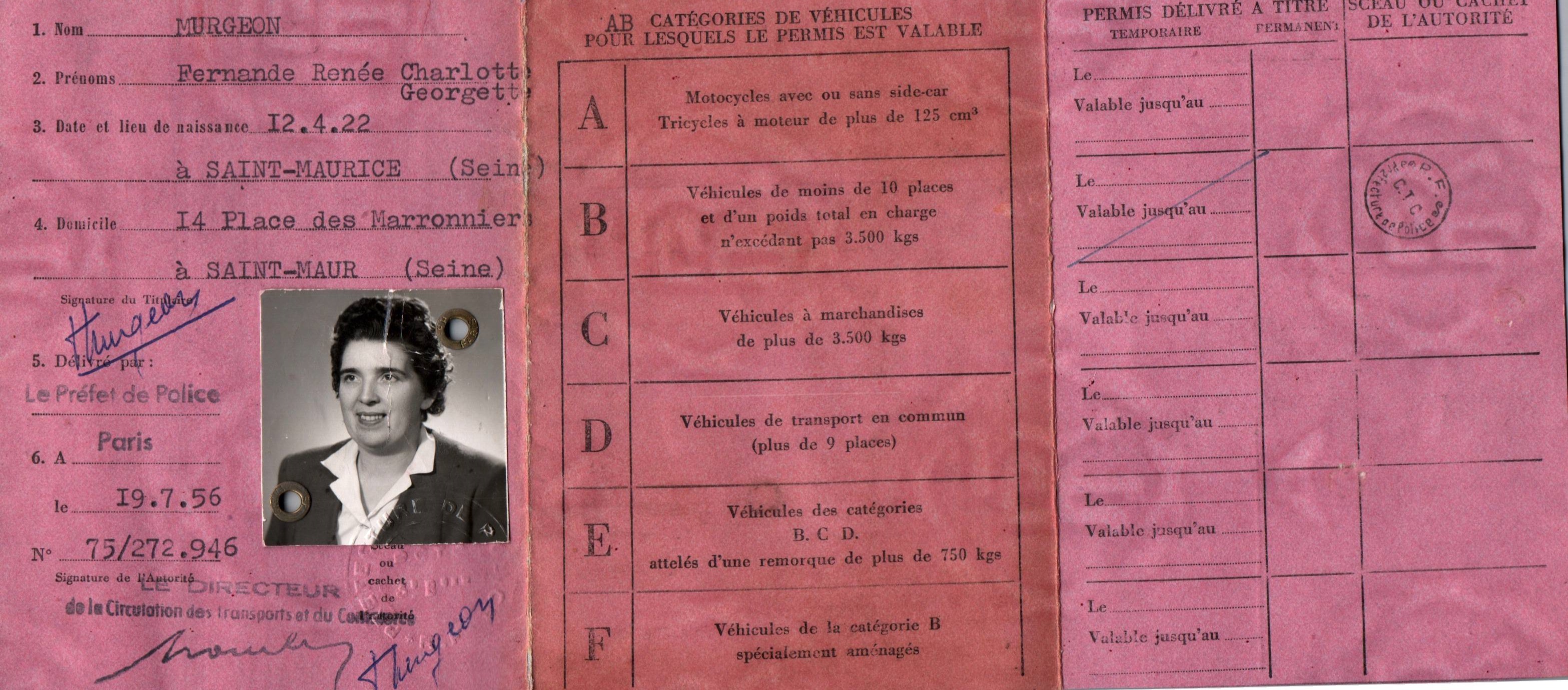 • 1956 : Murgeon Fernande: Permis de conduire