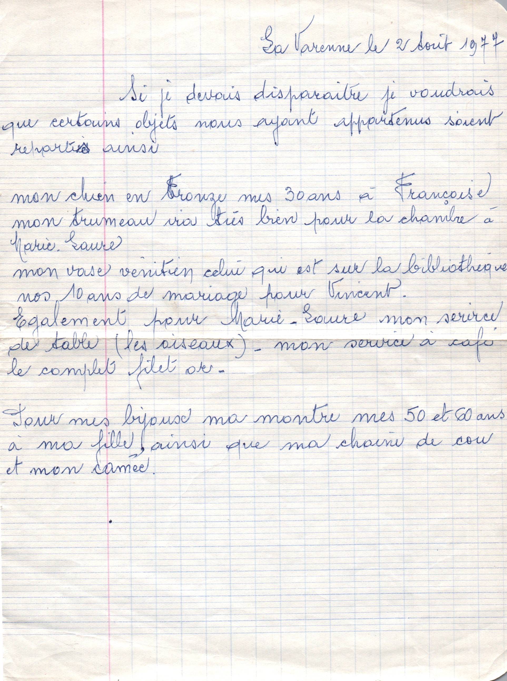• 1972 : Murgeon Pierre, Fernande, Charles, Georgette: Testaments