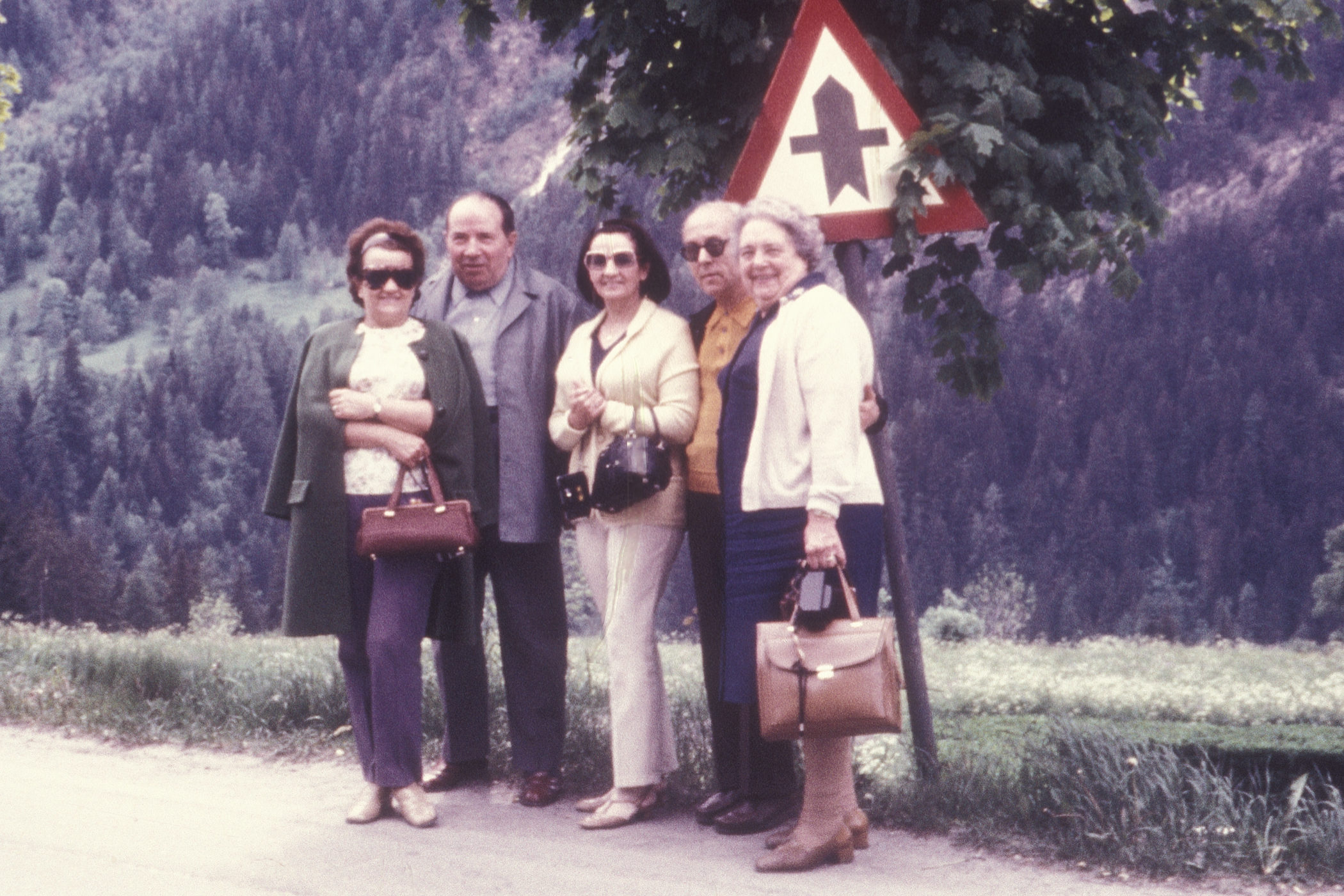 31: de g à d, Roger Vetter, Marie Laure, Fernande Murgeon, Madeleine Vetter, sur la route de Vence (06)