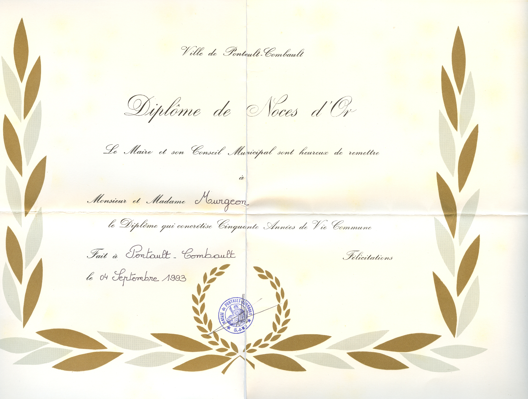 Photos Pierre Murgeon 1 a 9 : Pontault - rue du Gravier 10 à 25 : 50 ans de mariage de Pierre et fernande Murgeon - Mairie de Pontault