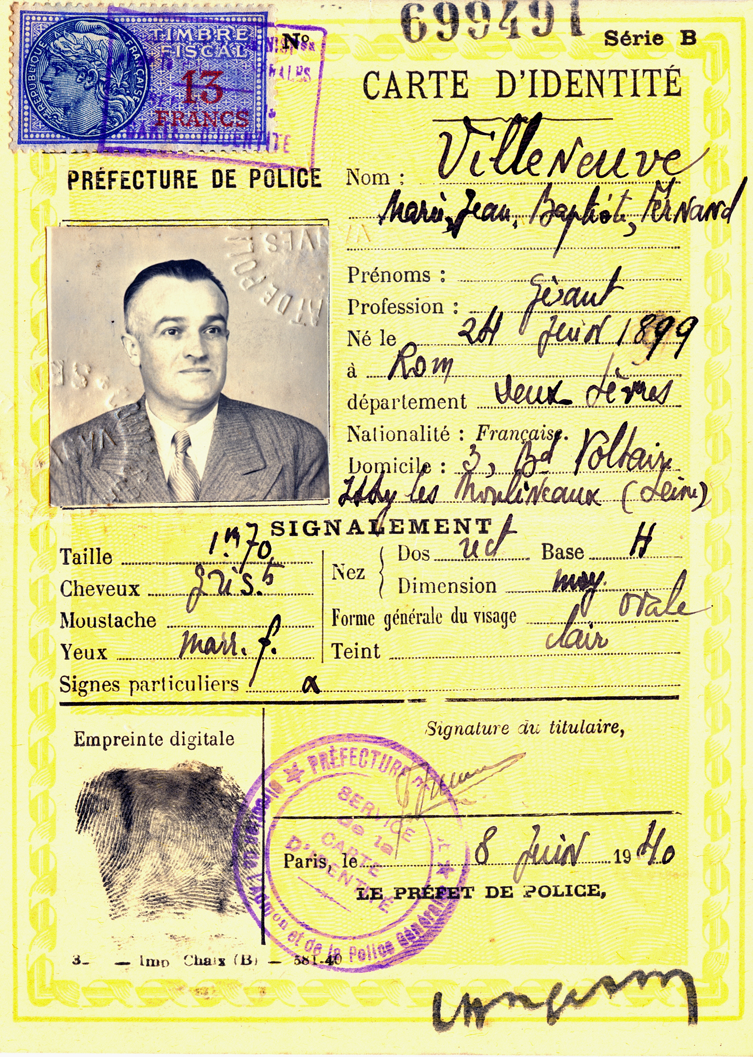 2: Carte d'identité de Fernand Villeneuve
